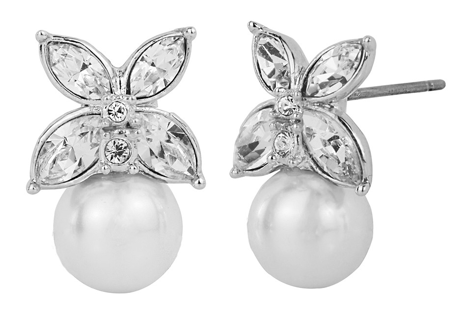 Traveller Oorstekers - Vlinder - Zilverkleurig - Preciosa crystals - Parels - 8mm