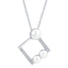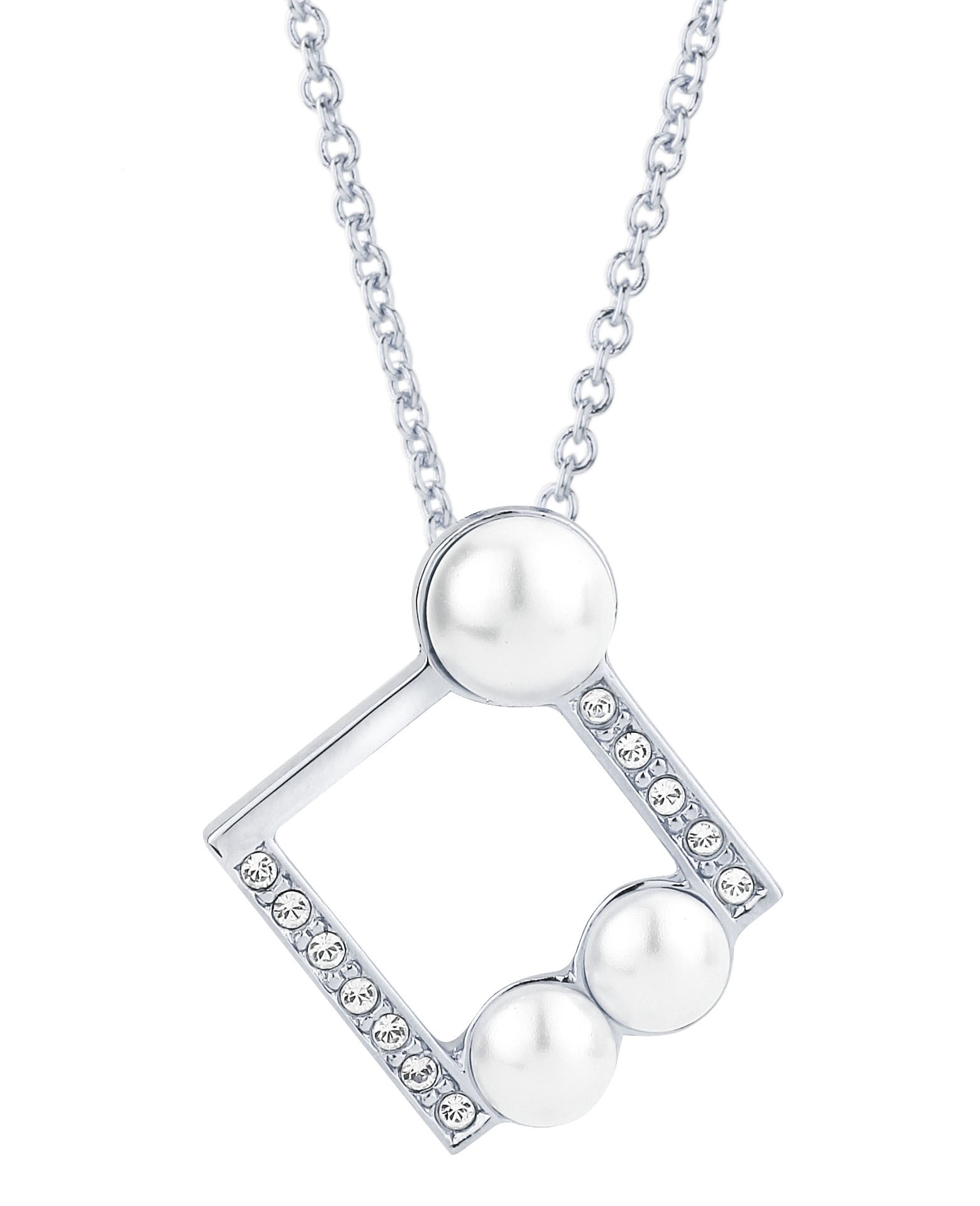 Traveller Dames Ketting met Hanger - Parels - Ø 6+8mm - Kristal - Geplatineerd - Vierkant - 28x25mm - 38/41/44cm