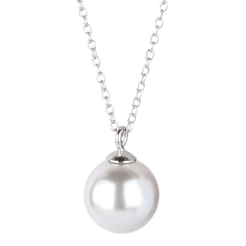 Traveller Dames Ketting - Swarovski Parel - 10 mm - Zilver - Lengte Verstelbaar 40 / 45 cm