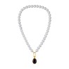 Traveller Dames Parelketting met Hanger - Parels - 10mm - Wit - Kristal - Donker Blauw - Ovaal - 45cm - Verguld