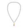 Traveller Dames Parelketting met Hanger - Parels - 8 mm - Wit - Kristal - 12 mm - Hart - 45 cm - Verguld