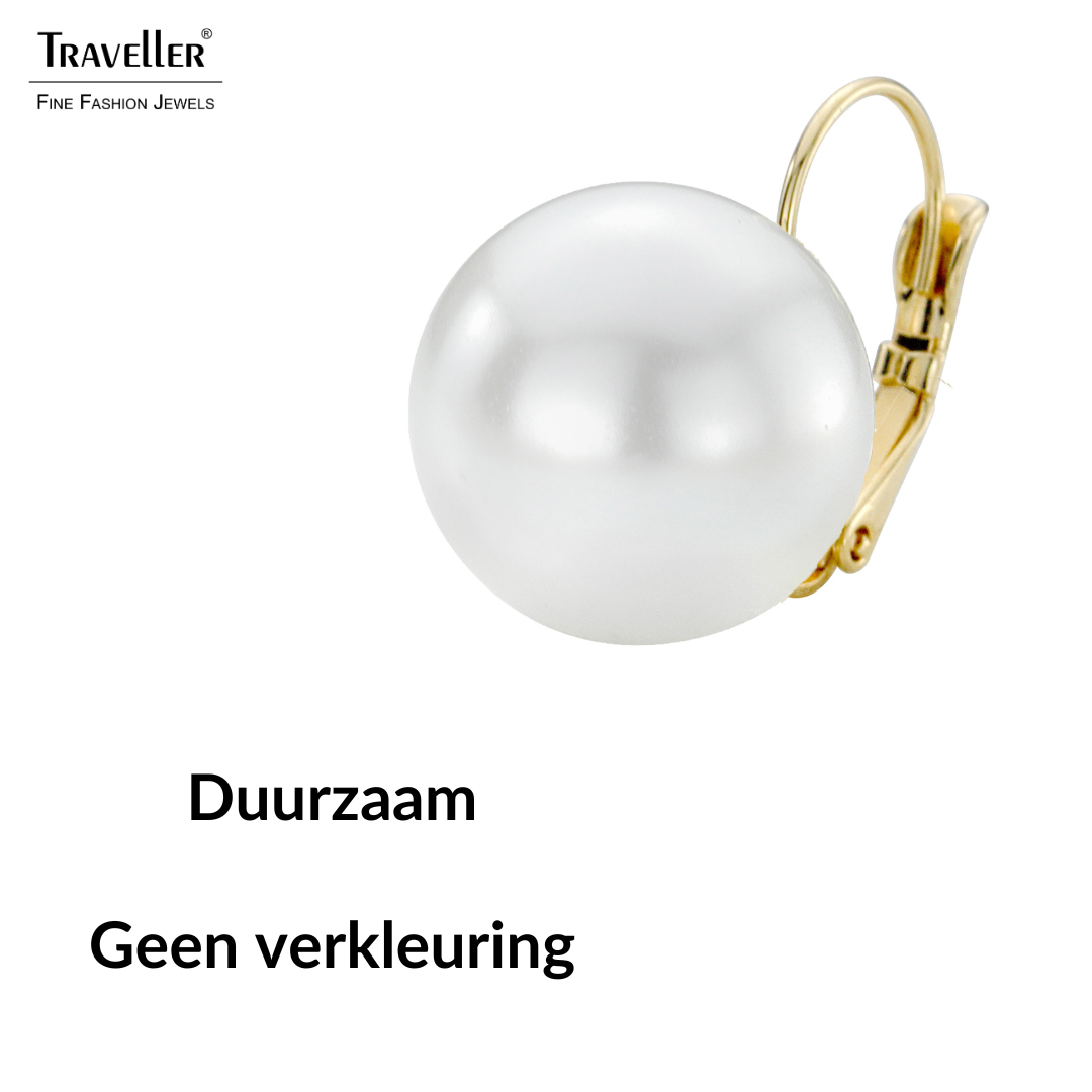 De klassieke, girls best friend, pareloorbel als hanger. Deze oorstekers van Traveller zijn tijdloos en ze passen overal bij. De oorsteker is verguld met 22 karaat goud en de stralende witte Mallorca parel heeft een diameter van 16 millimeter. De hoogwaardige imitatieparel komt uit Mallorca, een eiland dat bekendstaat om haar parels. De oorbellen wegen per stuk 3,5 gram.