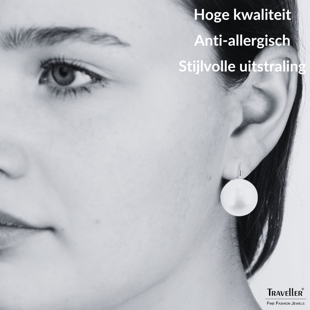 De klassieke, girls best friend, pareloorbel als hanger. Deze oorstekers van Traveller zijn tijdloos en ze passen overal bij. De zilverkleurige oorsteker is geplatineerd en de stralende witte Mallorca parel heeft een diameter van 16 millimeter. De hoogwaardige imitatieparel komt uit Mallorca, een eiland dat bekendstaat om haar parels. De oorbellen wegen per stuk 3,5 gram.