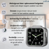 - Geen tikgeluid, dankzij de slepende secondewijzer (geruisloze kwartsklok)