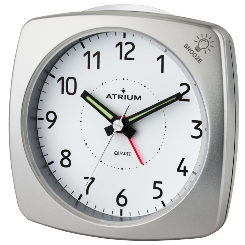 ATRIUM Wekker - Analoog - Zilver - Zonder Tikgeluid - Opbouwende Pieptoon - Alarm - Snooze