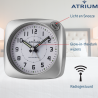 ATRIUM Wekker - Radiogestuurd - Analoog - Geen tikgeluid - Afgerond vierkant model - Duidelijk - Zilver