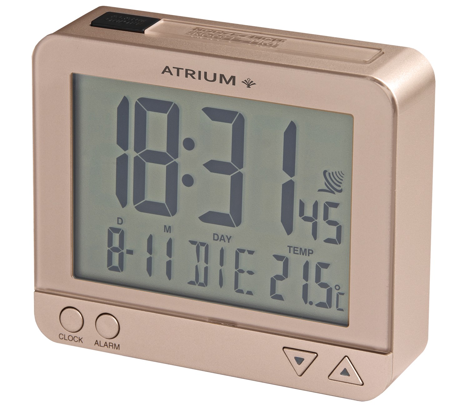 ATRIUM Wekker - Radiogestuurd - Digitaal - Rosé / Brons - Licht - Snooze - Opbouwende Pieptoon Alarm